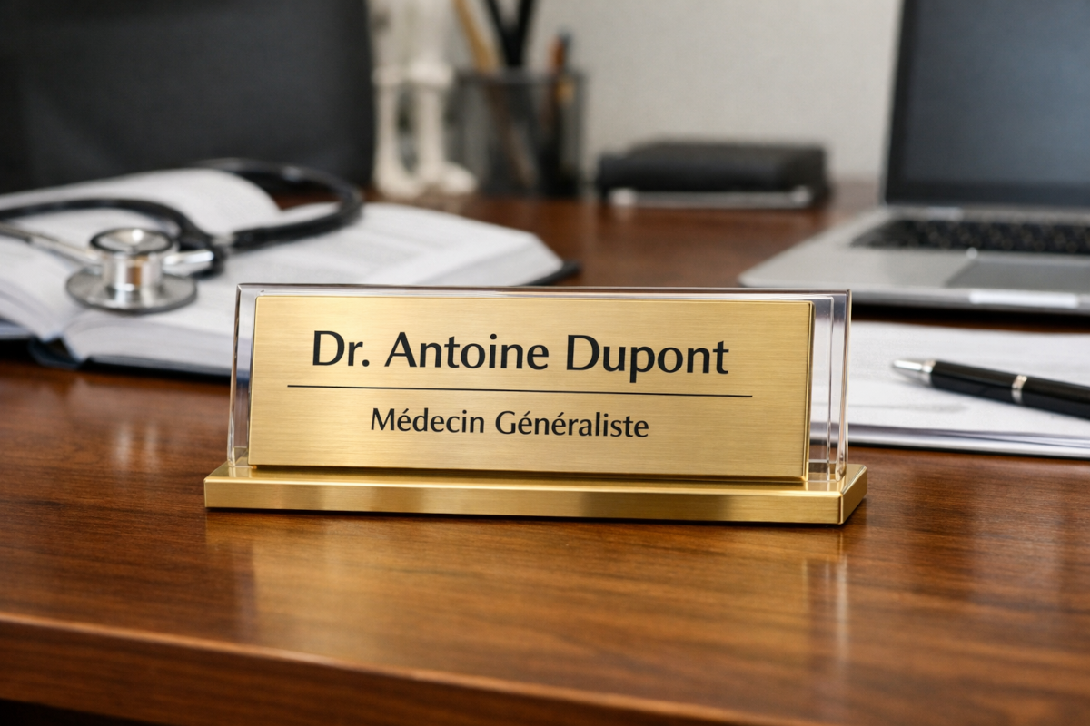 Le laiton quant à lui incarne l’aspect institutionnel de certaines professions, valorisant tradition et prestige par ses reflets dorés uniques. Les plaques en aluminium séduisent pour leur poids plume et leur simplicité à personnaliser, tandis que le PVC offre une solution abordable, adaptée notamment aux espaces intérieurs exposés à peu d’intempéries.